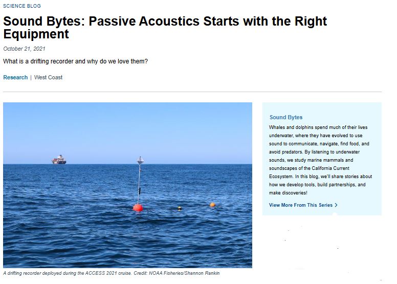 In an effort to share our exciting research with the public, I had our lab develop a blog, “Sound Bytes”. This served not only as an opportunity to share the science conducted by our research lab, but it also provided our researchers, students, interns, and collaborators with a platform to share their role in our research. The blog was well received by the public, government policy managers, NOAA leadership, and fellow scientists. I wrote one article describing a partnership with local fisherman ‘Fresh Catch- Lessons from A Fisherman’.