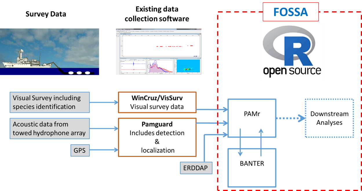 FOSSA provides a streamlined approach to analyzing passive acoustic data using open source software (R programming language). While I lead each of these efforts, all the programming was performed by team members. Combined with PAMGuard open source software, these packages together provide an end-to-end open source workflow for efficient and standardized processing of acoustic data. These efforts are now being adopted and expanded nationally as part of the NOAA PAM-Strategic Initiative.